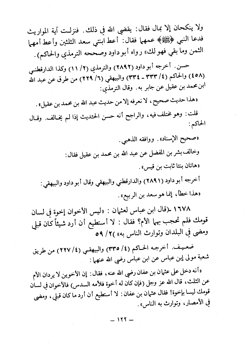 (1678) - (قال ابن عباس لعثمان: " ليس الأخوان إخوة فى لسان قومك فلم تحجب بهما الأم؟ فقال: لا أستطيع أن أرد شيئا كان قبلى ومضى فى البلدان وتوارث الناس به " (2/59) .
