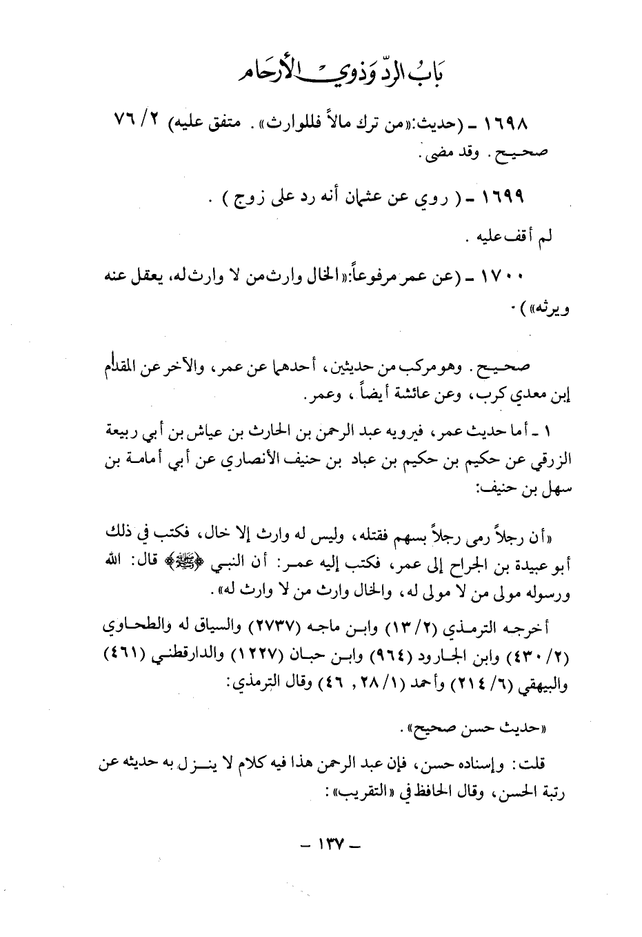 (1698) - (حديث: " من ترك مالا فللوارث " متفق عليه (2/76) .