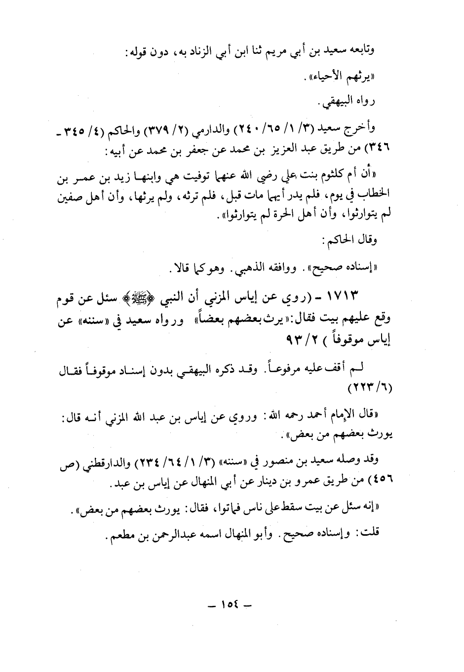 وتابعه سعيد بن أبى مريم حدثنا ابن أبى الزناد به , دون قوله: " يرثهم الأحياء " رواه البيهقى.