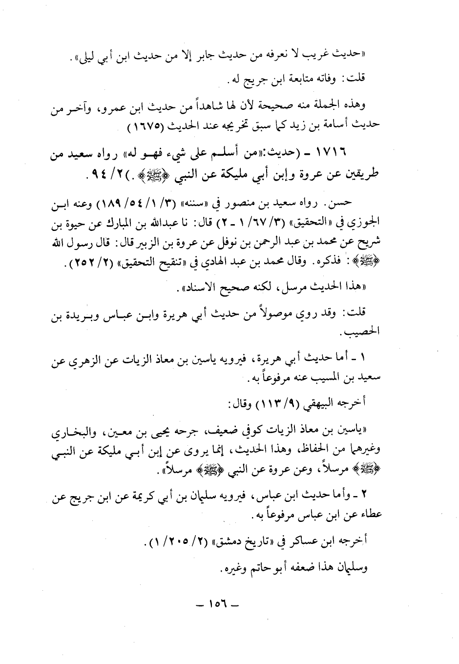 (1716) - (حديث: " من أسلم على شىء فهو له " رواه سعيد من طريقين عن عروة وابن أبى مليكة عن النبى صلى الله عليه وسلم (2/94) .