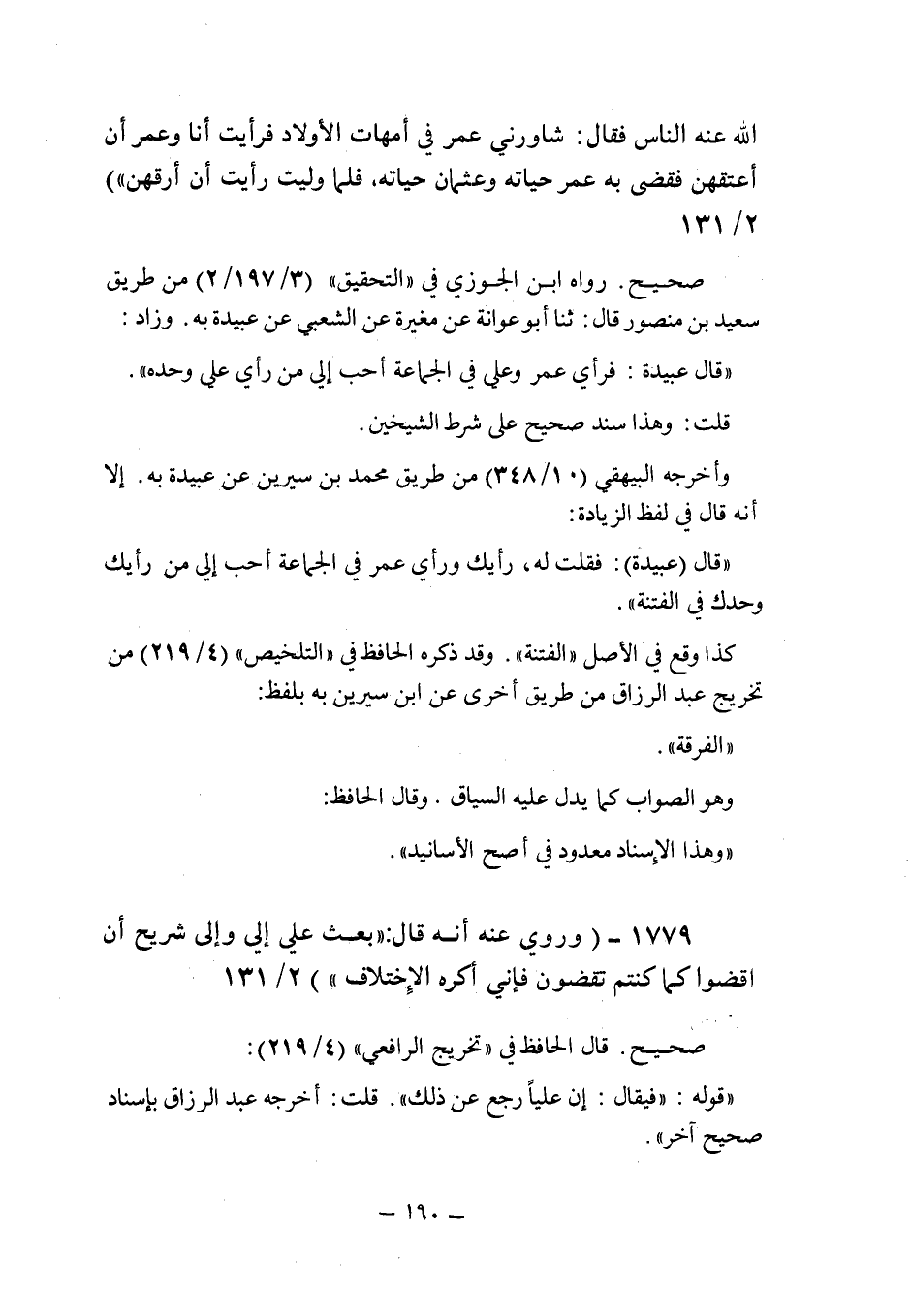 رواه ابن الجوزى فى " التحقيق " (3/197/2) من طريق سعيد بن منصور قال: حدثنا أبو عوانة عن مغيرة عن الشعبى عن عبيدة به , وزاد: " قال عبيدة: فرأى عمر وعلى فى الجماعة أحب إلى من رأى على وحده ".