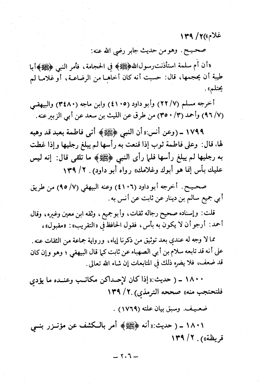 (1800) - (حديث: " إذا كان لإحداكن مكاتب وعنده مايؤدى فلتحتجب منه " صححه الترمذى (2/139) .