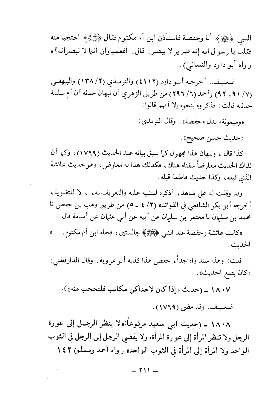 (1808) - (حديث أبى سعيد مرفوعا: " لا ينظر الرجل إلى عورة الرجل ولا تنظر المرأة إلى عورة المرأة , ولا يفضى الرجل إلى الرجل فى الثوب الواحد ولا المرأة إلى المرأة فى الثوب الواحد " رواه أحمد ومسلم (2/142) .