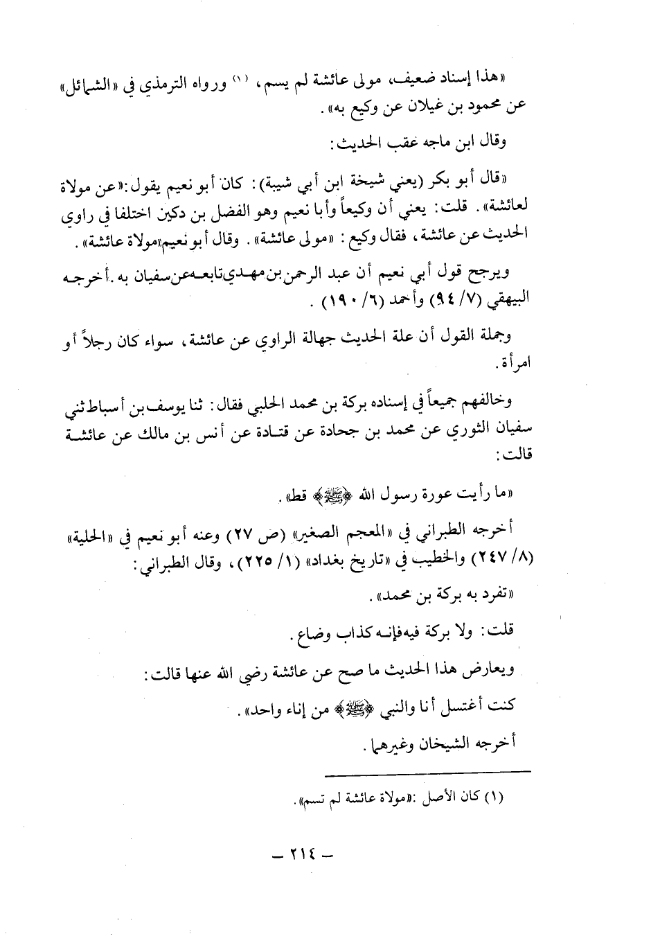 وقال ابن ماجه عقب الحديث: " قال أبو بكر (يعنى شيخه ابن أبى شيبة) : كان أبو نعيم يقول: " عن مولاة لعائشة ".
