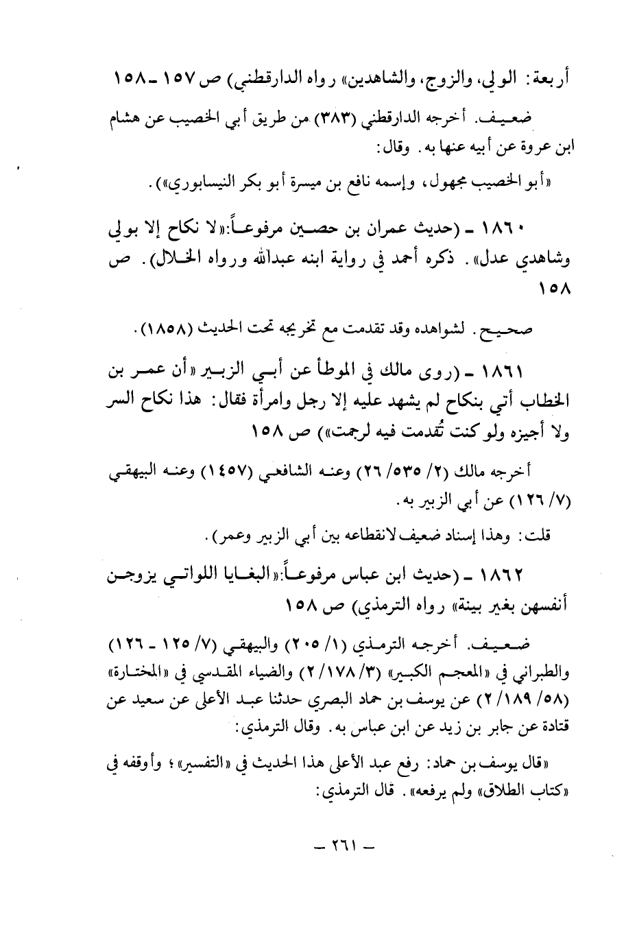 (1862) - (حديث ابن عباس مرفوعا: " البغايا اللواتى يزوجن أنفسهن بغير بينة " رواه الترمذى (ص 158) .