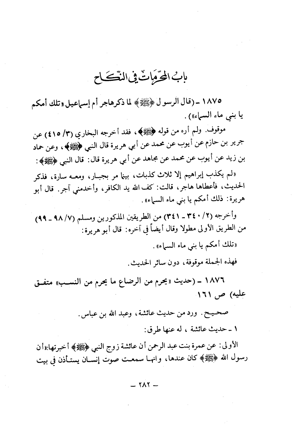 (1876) - (حديث: " يحرم من الرضاع ما يحرم من النسب " متفق عليه (ص 161) .