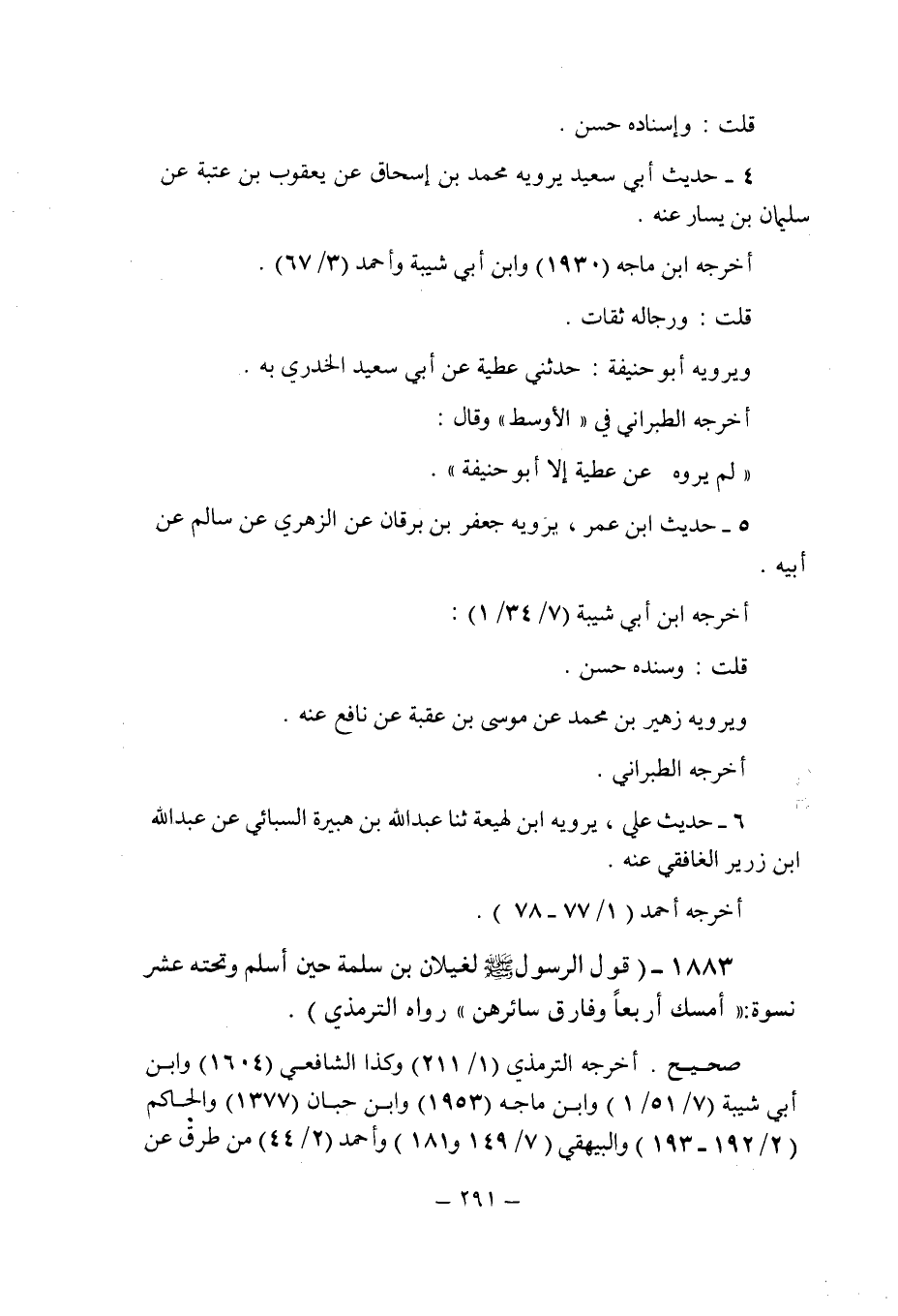 4 ـ حديث أبى سعيد يرويه محمد بن إسحاق عن يعقوب بن عتبة عن سليمان بن يسار عنه أخرجه ابن ماجه (1930) وابن أبى شيبة وأحمد (3/67) .