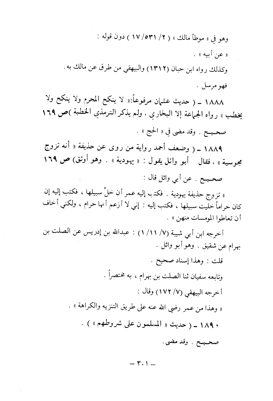 (1889) - (وضعف أحمد رواية من روى عن حذيفة: " أنه تزوج مجوسية " , فقال: أبو وائل يقول: " يهودية ". وهو أوثق (ص 169) .