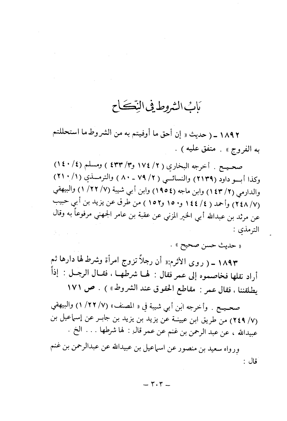 (1892) - (حديث: " إن أحق ما أوفيتم به من الشروط ما استحللتم به الفروج " متفق عليه.