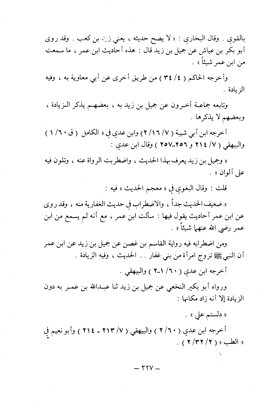 وقال البخارى: " لا يصح حديثه , يعنى زيد بن كعب , وقد روى أبو بكر بن عياش عن جميل بن زيد قال: هذه أحاديث ابن عمر , ما سمعت من ابن عمر شيئا ".