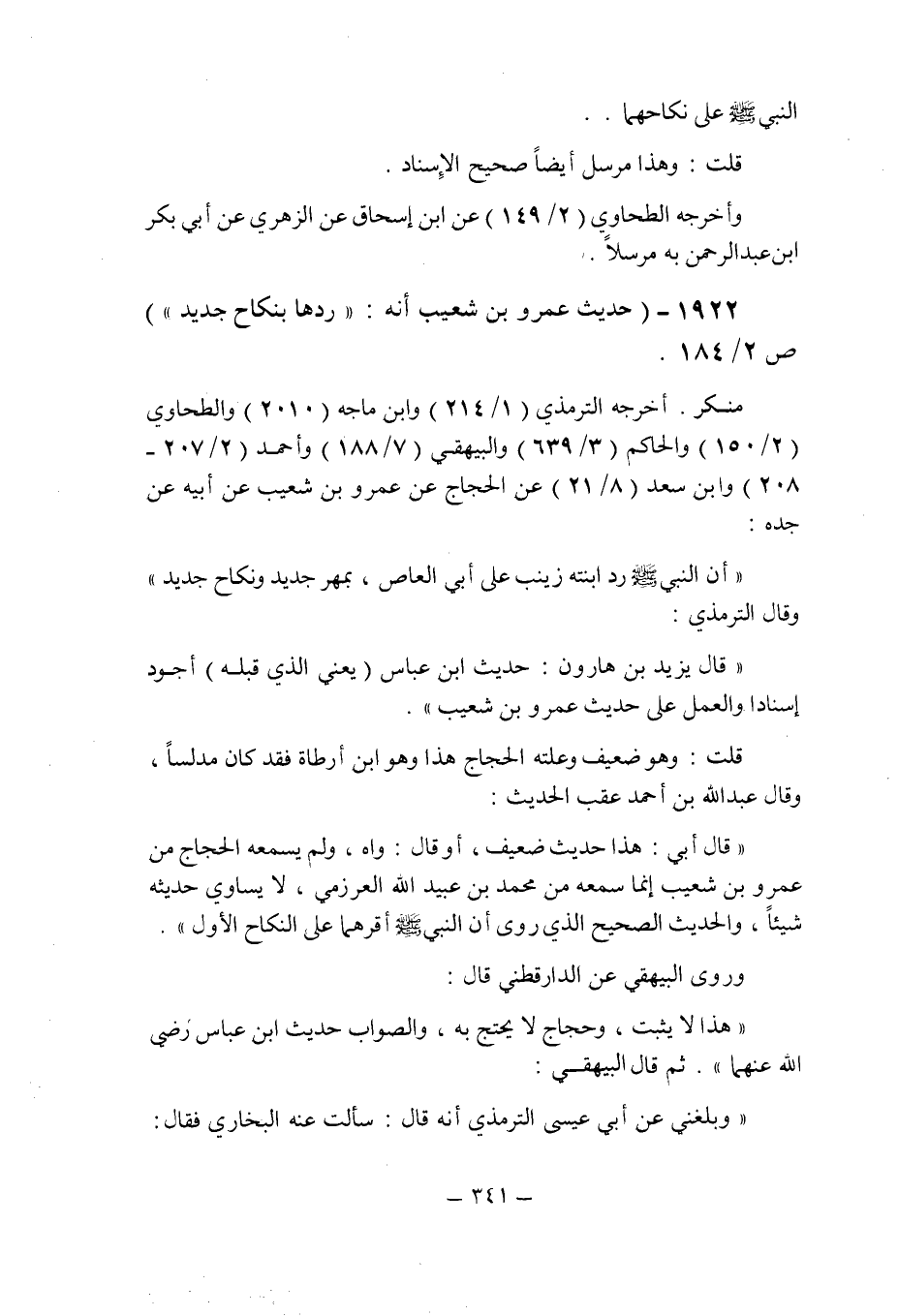(1922) - (حديث عمرو بن شعيب أنه: " ردها بنكاح جديد " (ص 2/184) .