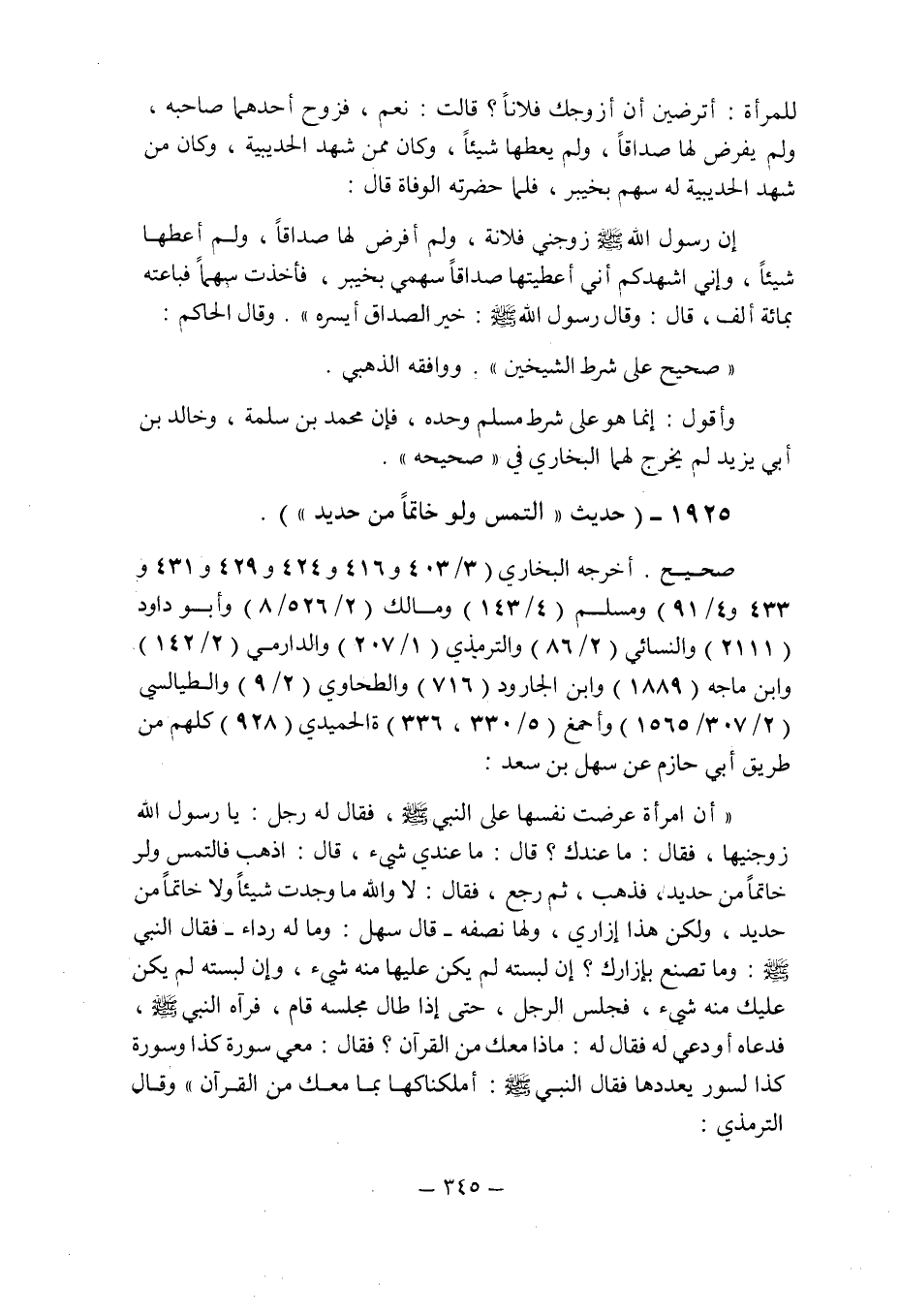 (1925) - (حديث: " التمس ولو خاتما من حديد ".