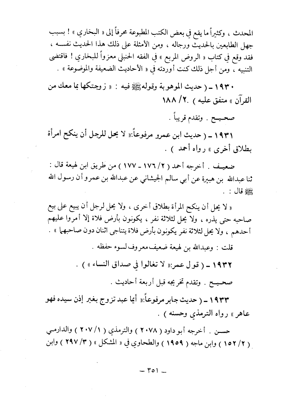 (1933) - (حديث جابر مرفوعا: " أيما عبد تزوج بغير إذن سيده فهو عاهر " رواه الترمذى وحسنه.