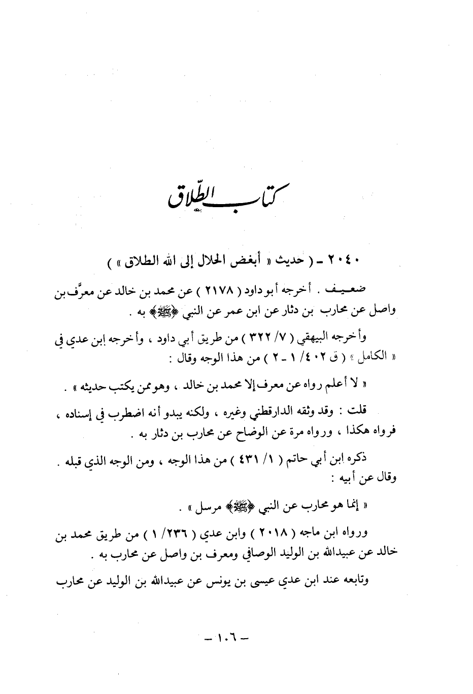(2040) - (حديث: " أبغض الحلال إلى الله الطلاق ".
