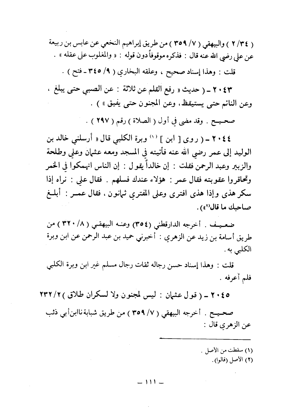 (2045) - (قول عثمان: " ليس لمجنون ولا لسكران طلاق " (2/232) .