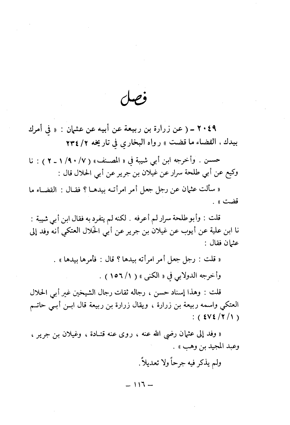(2049) - (عن زرارة بن ربيعة عن أبيه عن عثمان: " فى أمرك بيدك , القضاء ما قضت " رواه البخارى فى تاريخه (2/234) .