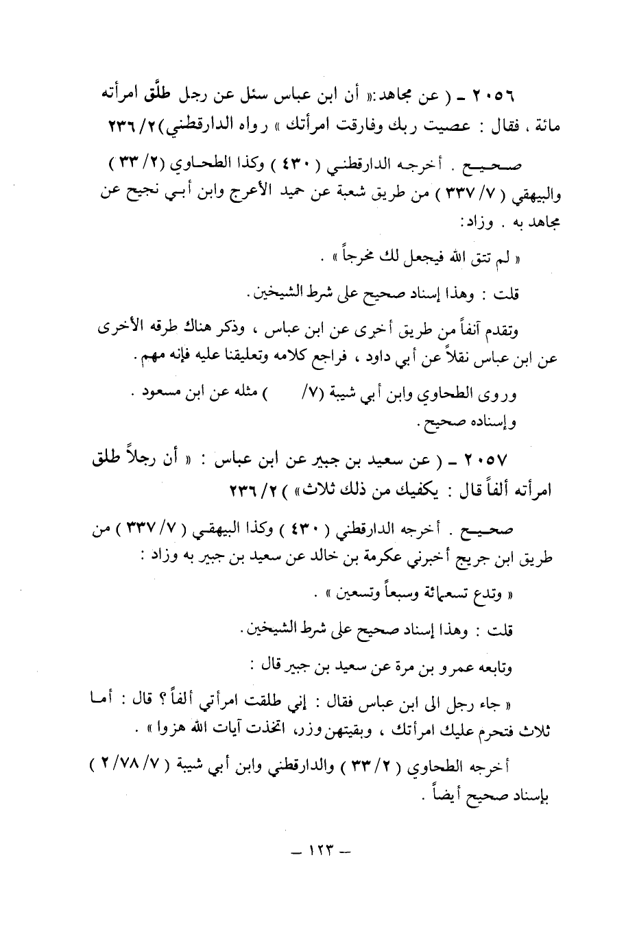 (2057) - (عن سعيد بن جبير عن ابن عباس: " أن رجلا طلق امرأته ألفا قال: يكفيك من ذلك ثلاث " (2/236) .