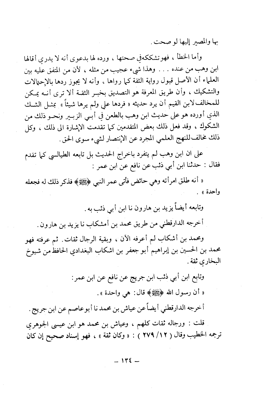 وهذا شىء عجيب من مثله , لأن من المتفق عليه بين العلماء أن الأصل قبول رواية الثقة كما رواها , وأنه لا يجوز ردها بالإحتمالات والتشكيك , وأن طريق المعرفة هو التصديق بخبر الثقة ألا ترى أنه يمكن للمخالف لابن القيم لأن يرد حديثه " فردها على ولم يرها شيئا " بمثل الشك الذى أورده هو على حديث ابن وهب بالطعن فى أبى الزبير ونحو ذلك من الشكوك , وقد فعل ذلك بعض المتقدمين كما تقدمت الإشارة إلى ذلك , وكل ذلك مخالف للنهج العلمى المجرد عن الإنتصار لشىء سوى الحق.
