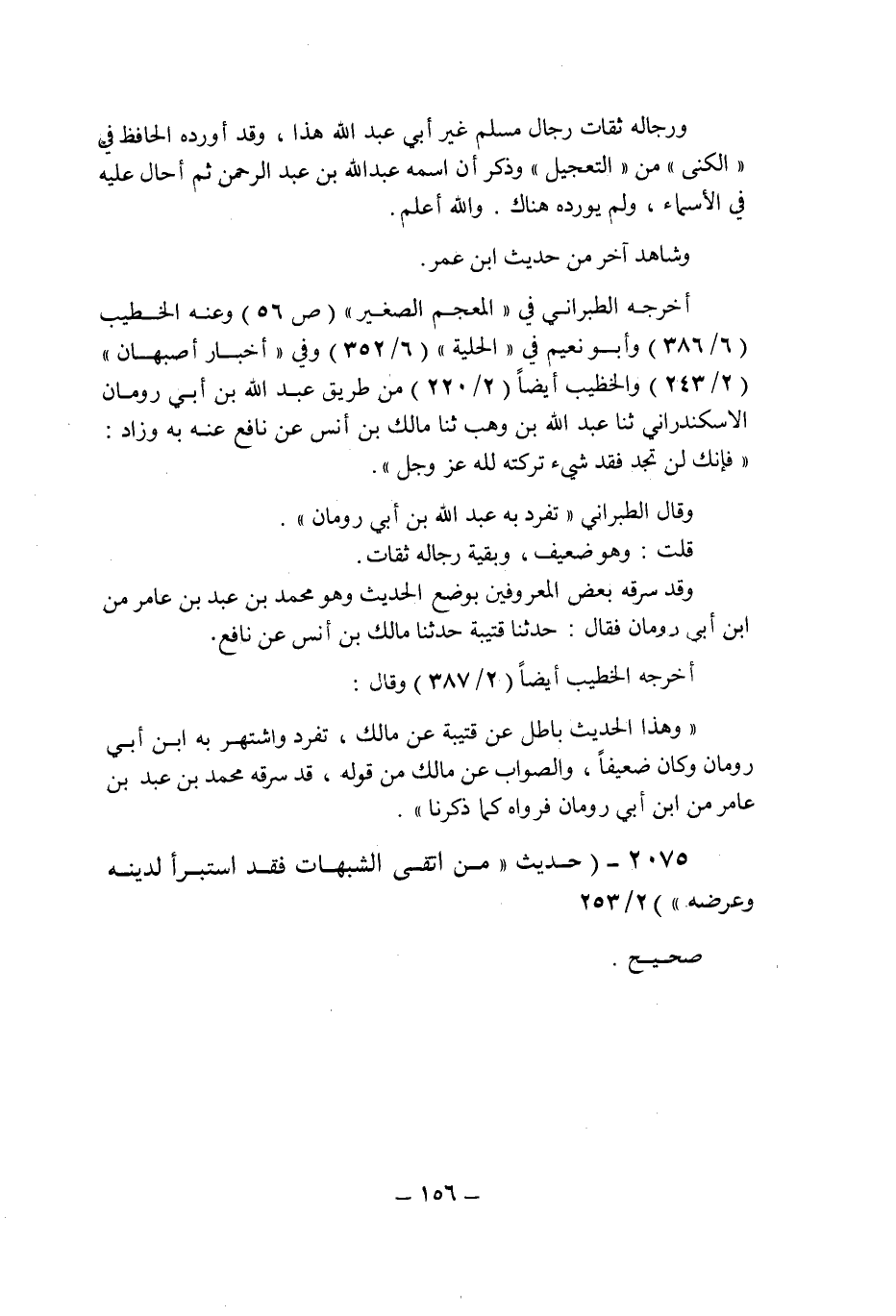 (2075) - (حديث: من اتقى الشبهات فقد استبرأ لدينه وعرضه " (2/253) .