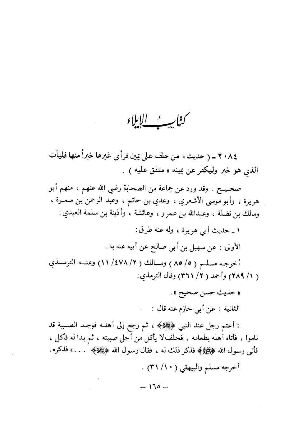 (2084) - (حديث: " من حلف على يمين فرأى غيرها خيرا منها فليأت الذى هو خير وليكفر عن يمينه " متفق عليه.