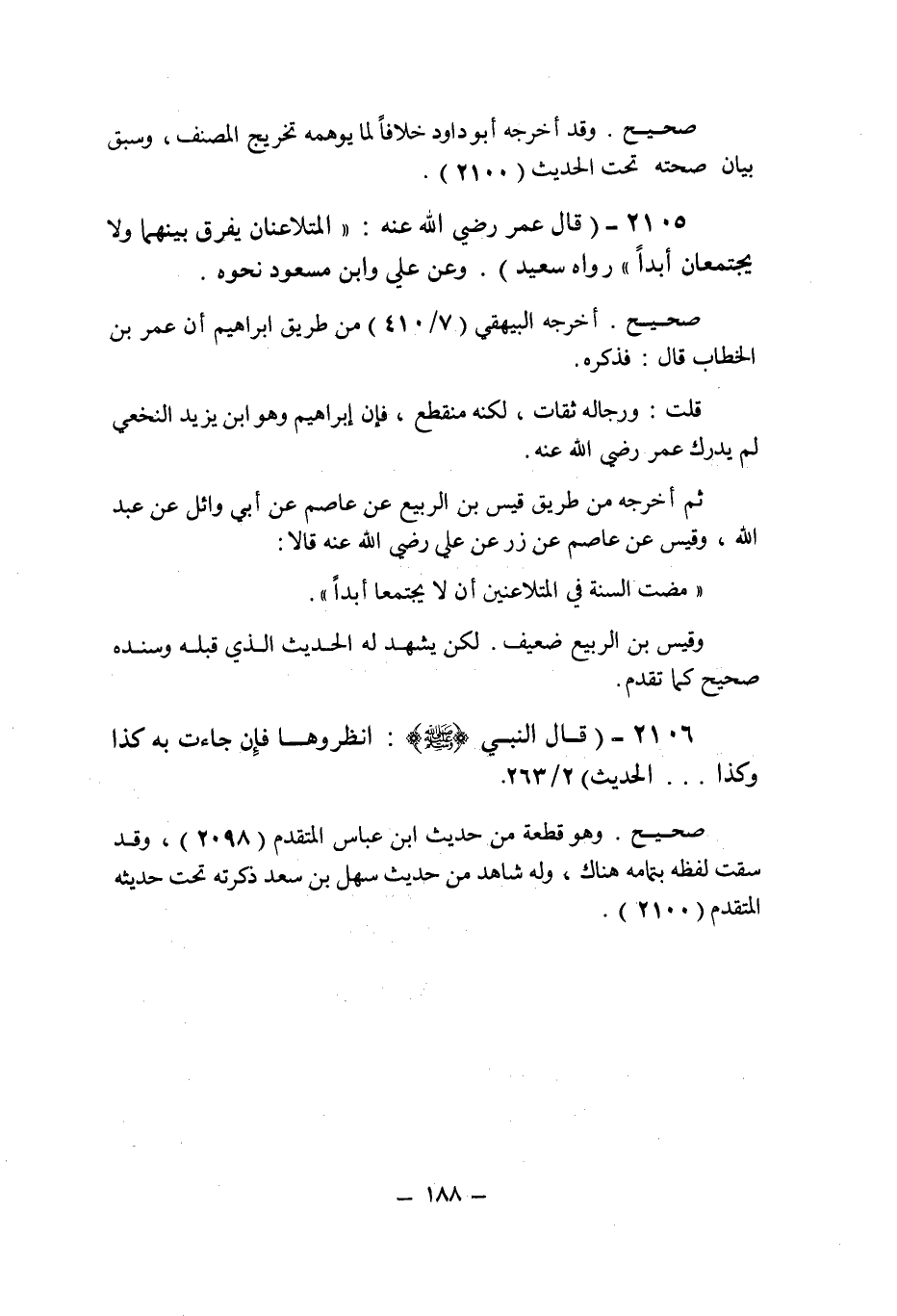 (2105) - (قال عمر رضى الله عنه: " المتلاعنان يفرق بينهما ولا يجتمعان أبدا " رواه سعيد , وعن على وابن مسعود نحوه.