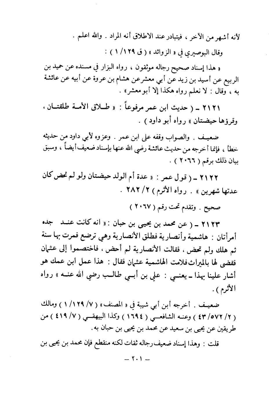 (2121) - (حديث ابن عمر مرفوعا: " طلاق الأمة طلقتان وقرؤها حيضتان " رواه أبو داود.