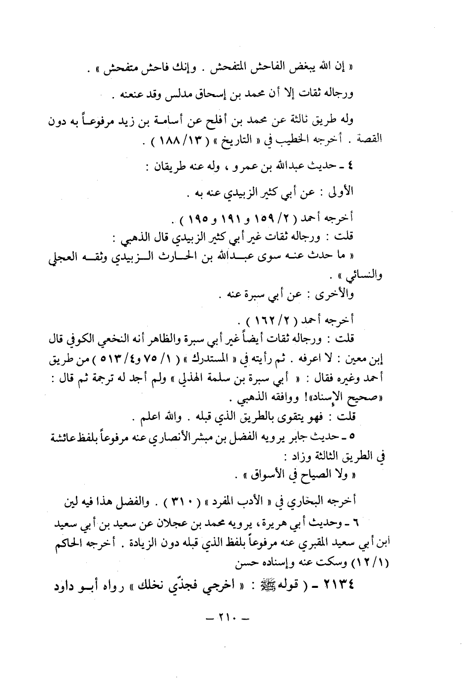 4 ـ حديث عبد الله بن عمرو , وله عنه طريقان: الأولى: عن أبى كثير الزبيدى عنه به , أخرجه أحمد (2/159 و191 و195) .