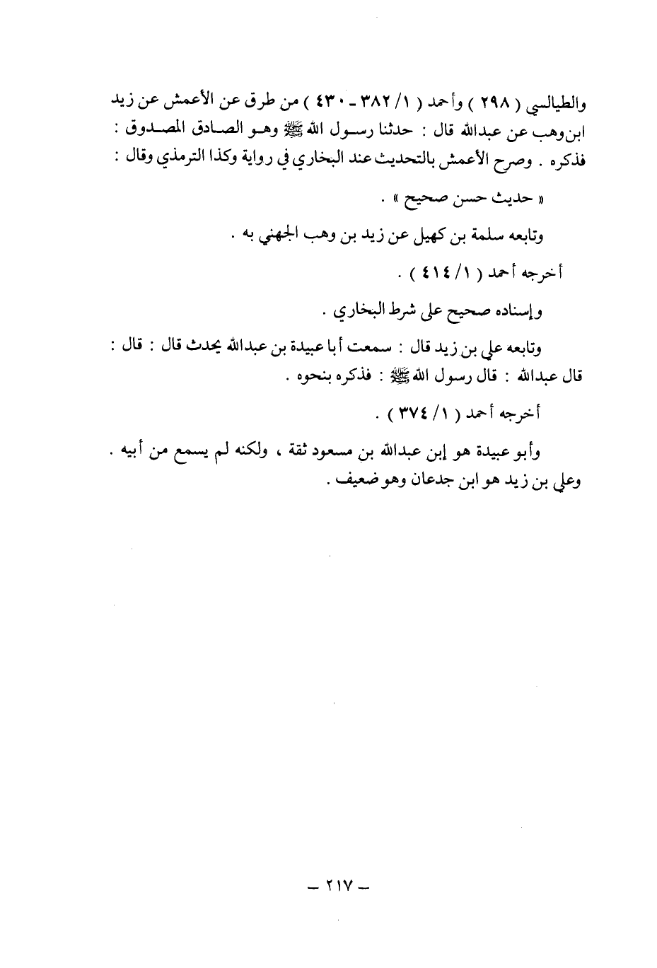 وصرح الأعمش بالتحديث عند البخارى فى رواية وكذا الترمذى وقال: " حديث حسن صحيح ".