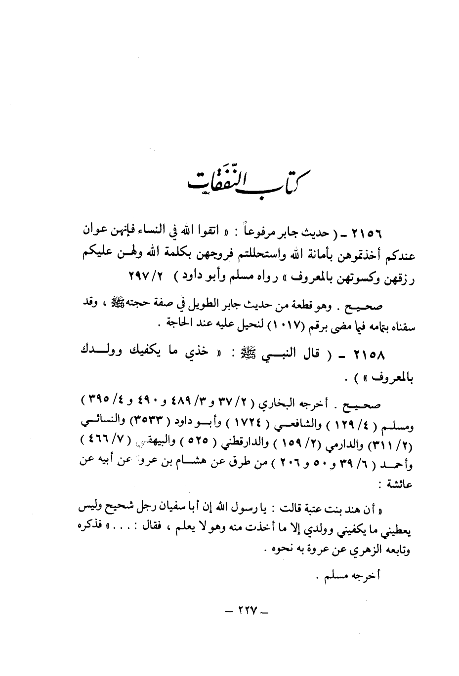 (2158) - (قال النبى صلى الله عليه وسلم: " خذى ما يكفيك وولدك بالمعروف ". [1]