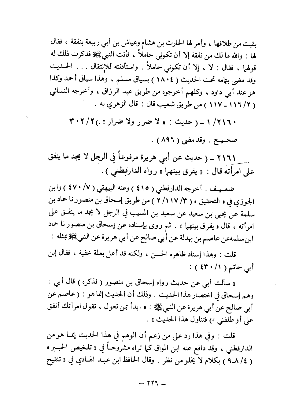 قلت: وفى هذا رد على من زعم أن الوهم فى هذا الحديث إنما هو من الدارقطنى , وقد دافع عنه ابن المواق كما تراه مشروحا فى " تلخيص الحبير " (4/8 ـ 9) بكلام لا يخلو من نظر.