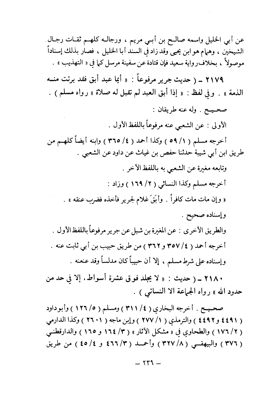 (2179) - (حديث جرير مرفوعا: " أيما عبد أبق فقد برئت منه الذمة " وفى لفظ: " إذا أبق العبد لم تقبل له صلاة " رواه مسلم.
