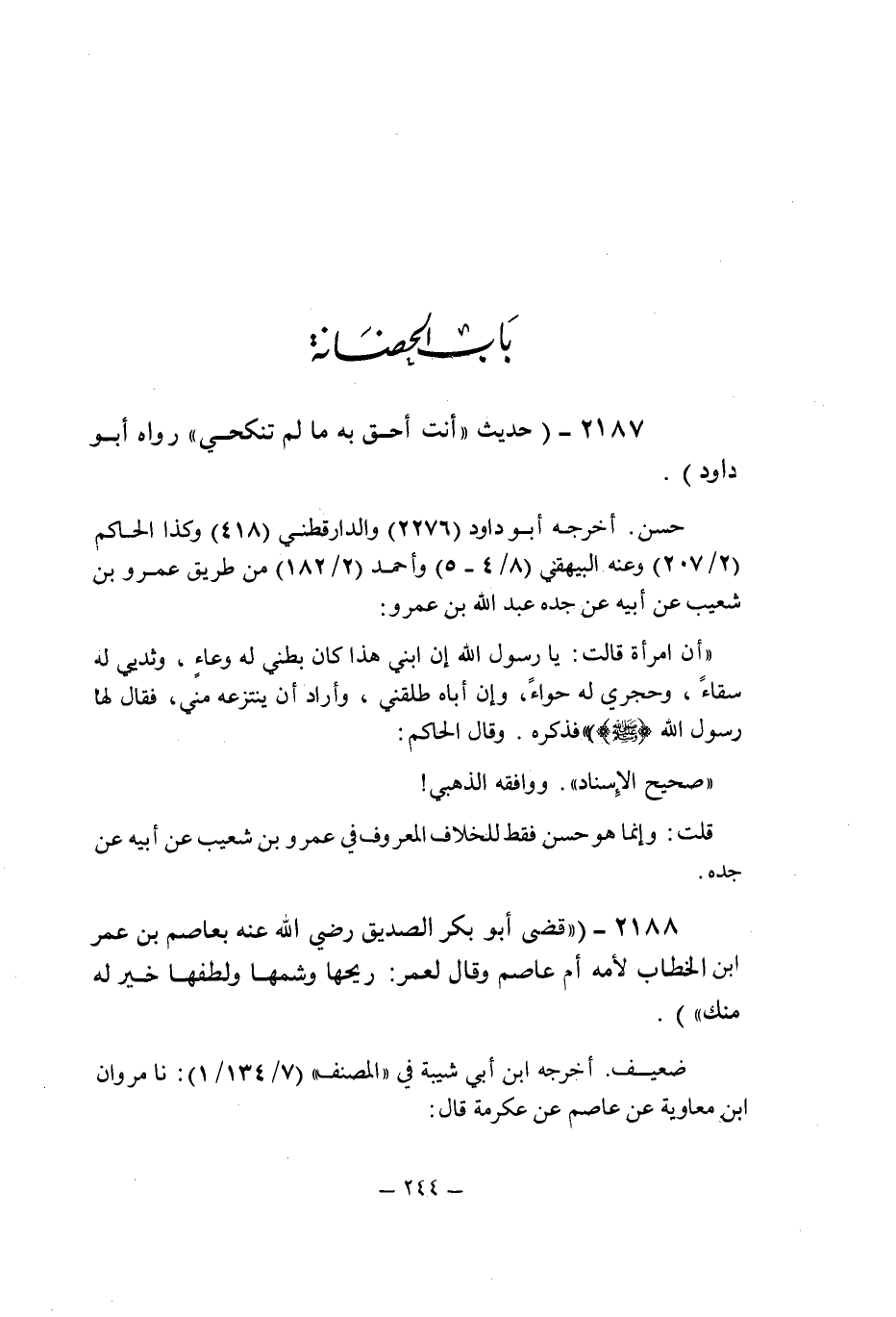 (2187) - (حديث: " أنت أحق به ما لم تنكحى " رواه أبو داود.