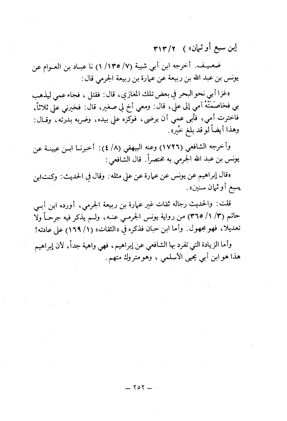 قال الشافعى: " قال إبراهيم عن يونس عن عمارة عن على مثله: وقال فى الحديث: وكنت ابن سبع أو ثمان سنين ".