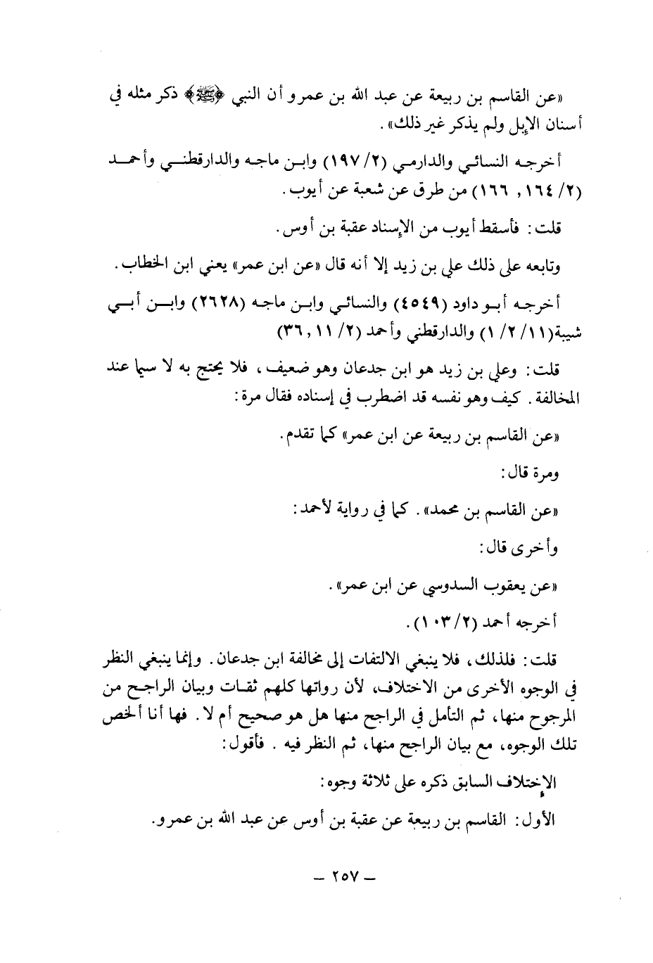 وإنما ينبغى النظر فى الوجوه الأخرى من الاختلاف , لأن رواتها كلهم ثقات وبيان الراجح من المرجوح منها , ثم التأمل فى الراجح منها هل هو صحيح أم لا.