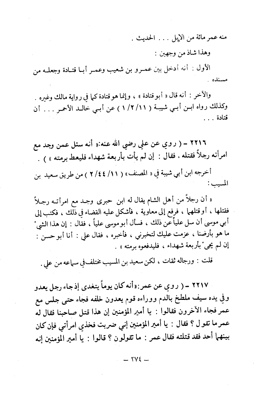 (2216) - (روى عن على رضى الله عنه: " أنه سئل عمن وجد مع امرأته رجلا فقتله , فقال: إن لم يأت بأربعة شهداء فليعط برمته ".