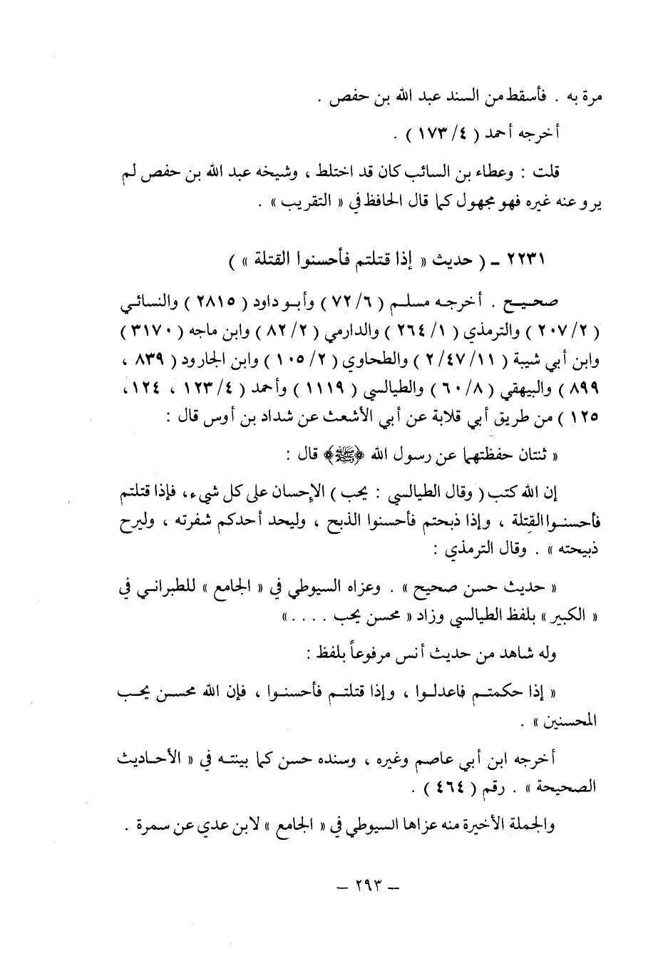 (2231) - (حديث: إذا قتلتم فأحسنوا القتلة ".