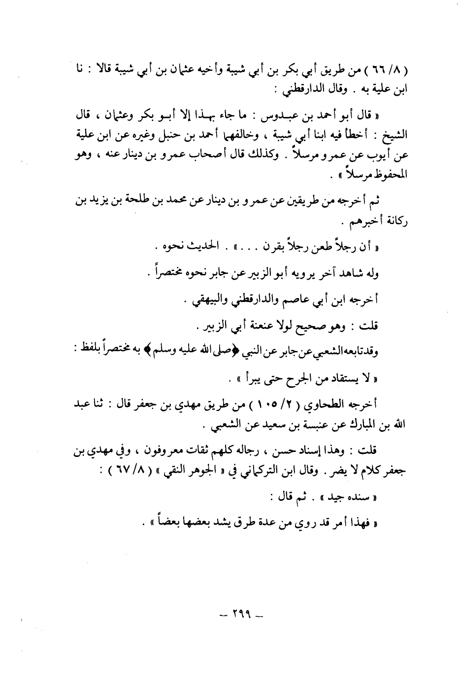 وقال الدارقطنى: " قال أبو أحمد بن عبدوس: ما جاء بهذا إلا أبو بكر وعثمان , قال: الشيخ: أخطأ فيه ابنا أبى شيبة , وخالفهما أحمد بن حنبل وغيره عن ابن علية عن أيوب عن عمرو مرسلا.