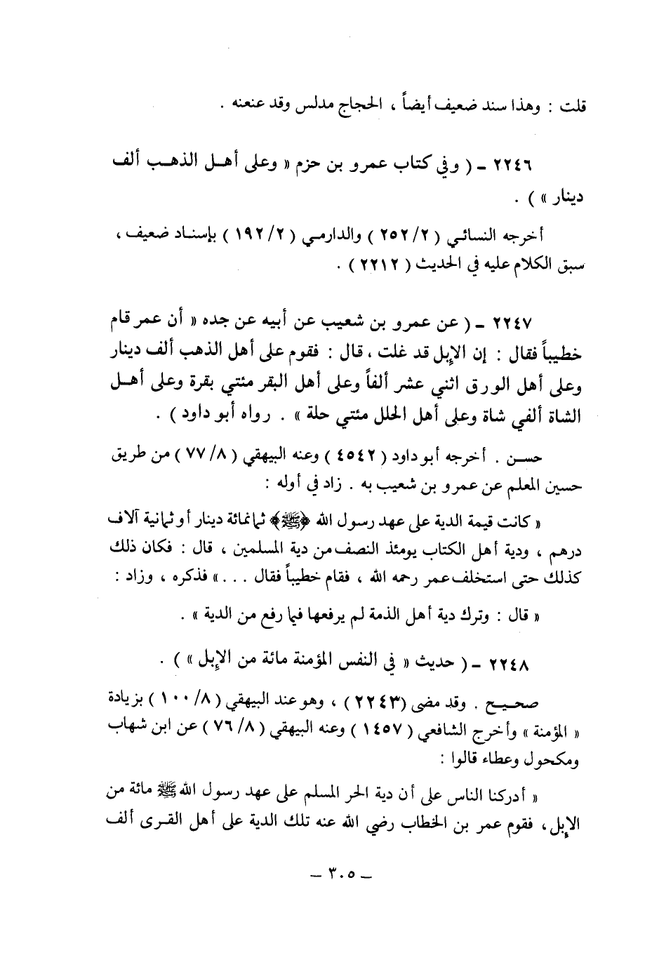 (2248) - (حديث: " فى النفس المؤمنة مائة من الإبل ".