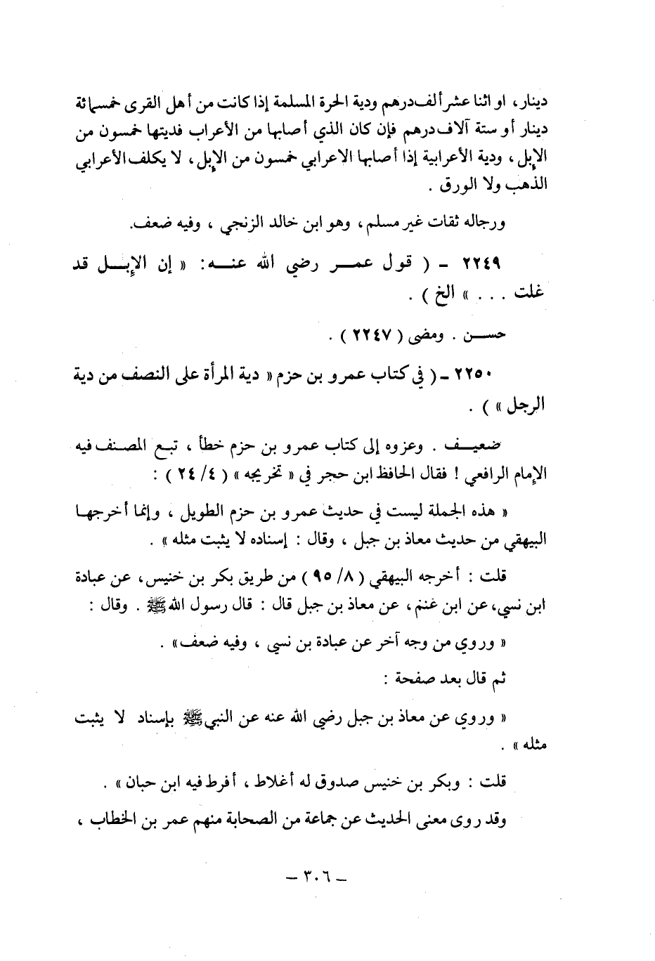 (2250) - (فى كتاب عمرو بن حزم: " دية المرأة على النصف من دية الرجل ".