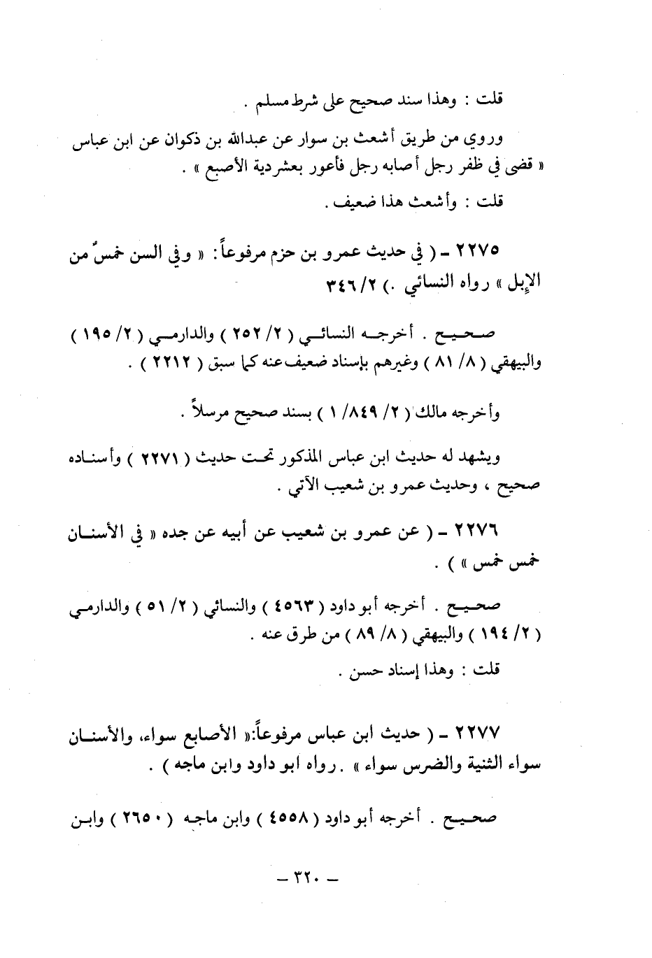 (2275) - (فى حديث عمرو بن حزم مرفوعا: " وفى السن خمس من الإبل " رواه النسائى (2/346) .