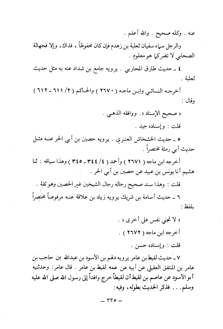 6 ـ حديث أسامة بن شريك يرويه زياد بن علاقة عنه مرفوعا مختصرا بلفظ: " لا تجنى نفس على أخرى " أخرجه ابن ماجه (2672) .