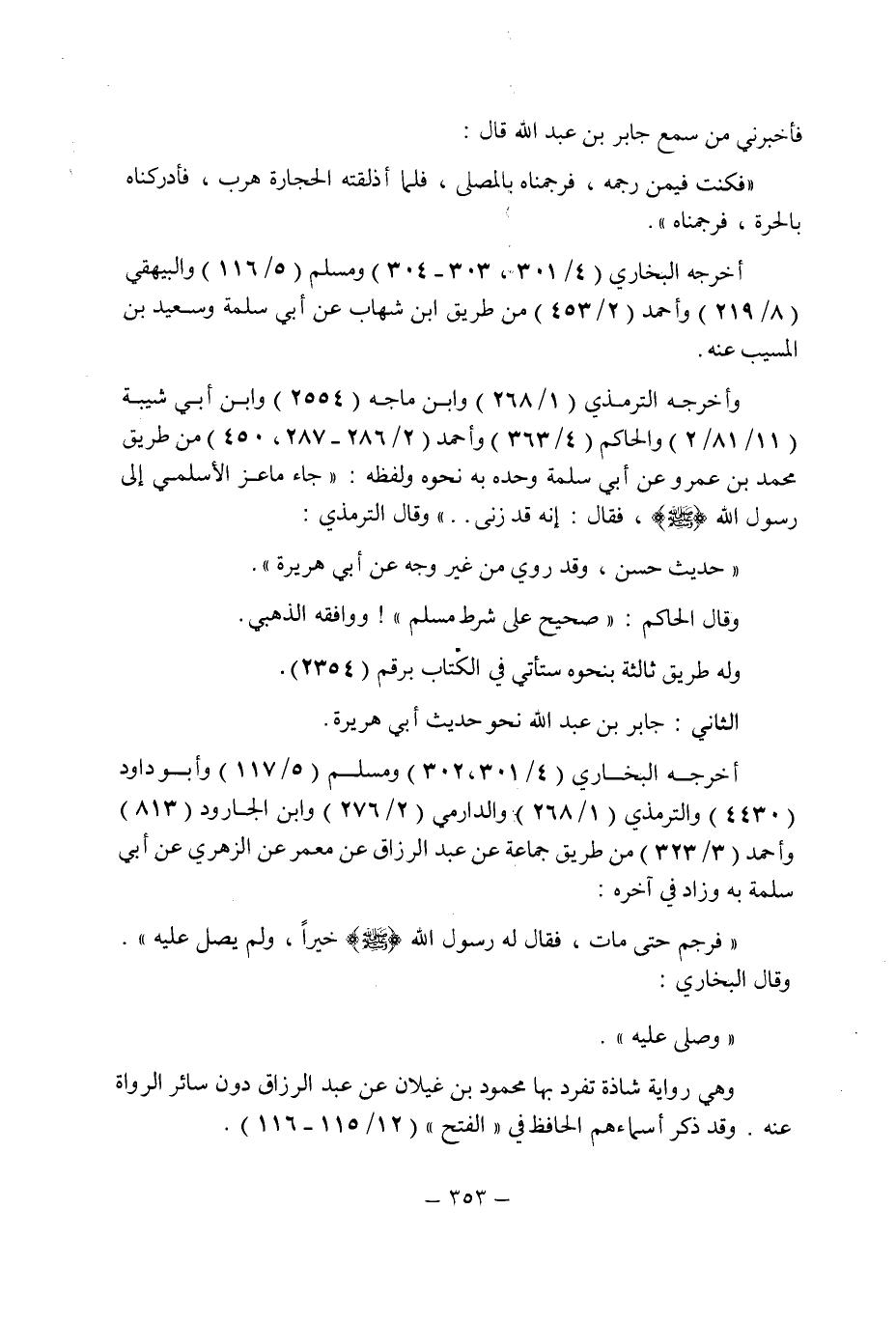 فأخبرنى من سمع جابر بن عبد الله قال: " فكنت فيمن رجمه , فرجمناه بالمصلى , فلما أذلقته الحجارة هرب , فأدركناه بالحرة , فرجمناه ".