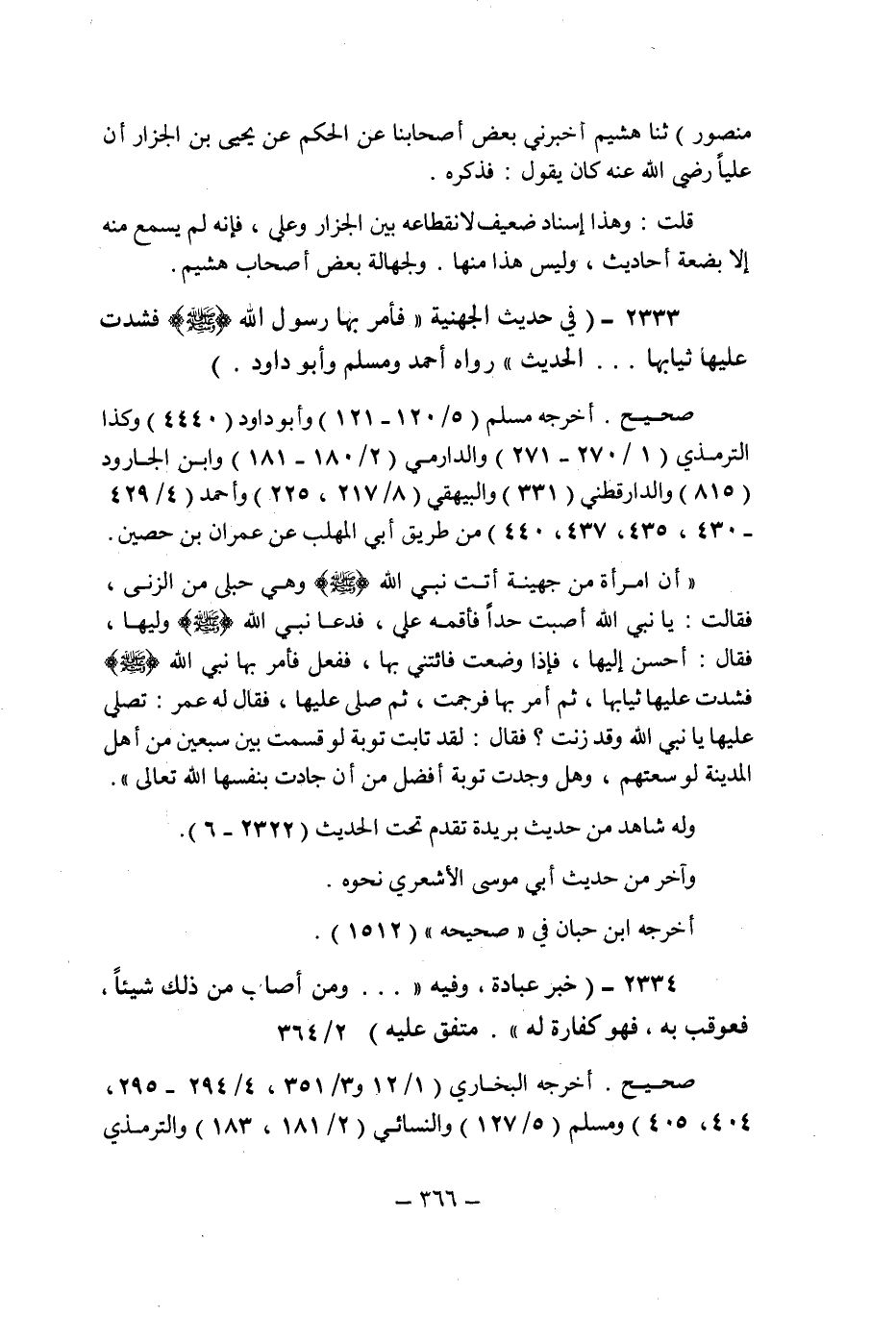 (2333) - (فى حديث الجهنية: " فأمر بها رسول الله صلى الله عليه وسلم فشدت عليها ثيابها ... الحديث " رواه أحمد ومسلم وأبو داود.