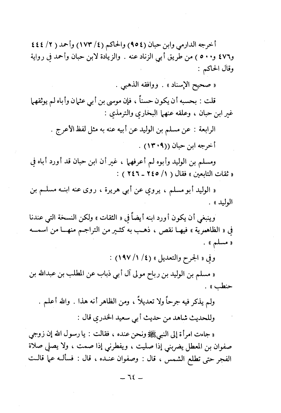 وينبغى أن يكون أورد ابنه أيضا فى " الثقات " ولكن النسخة التى عندنا فى " الظاهرية " فيها نقص , ذهب به كثير من التراجم منها من اسمه " مسلم ". [1]