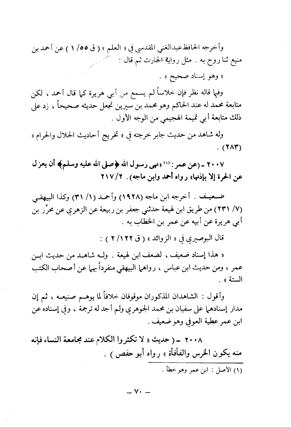 (2007) - (عن عمر (1) : " نهى رسول الله صلى الله عليه وسلم أن يعزل عن الحرة إلا بإذنها " رواه أحمد وابن ماجه (2/217) .