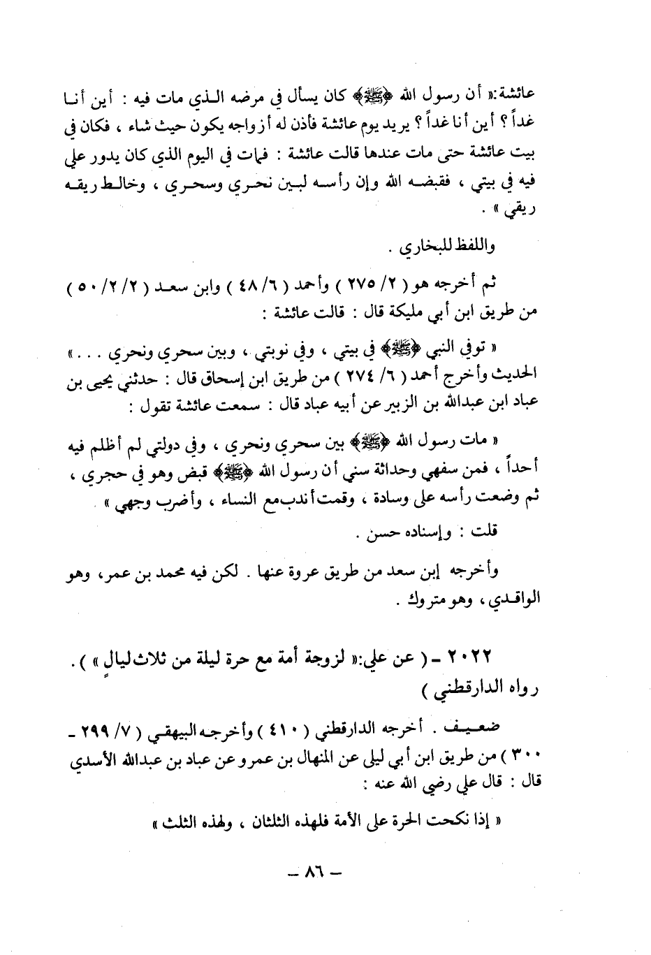 (2022) - (عن على: " لزوجة أمة مع حرة ليلة من ثلاث ليال " رواه الدارقطنى.