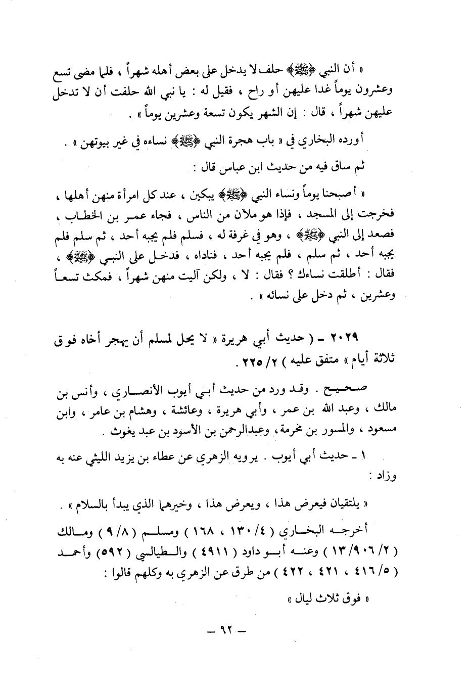 (2029) - (حديث أبى هريرة: " لا يحل لمسلم أن يهجر أخاه فوق ثلاثة أيام " متفق عليه (2/225) .