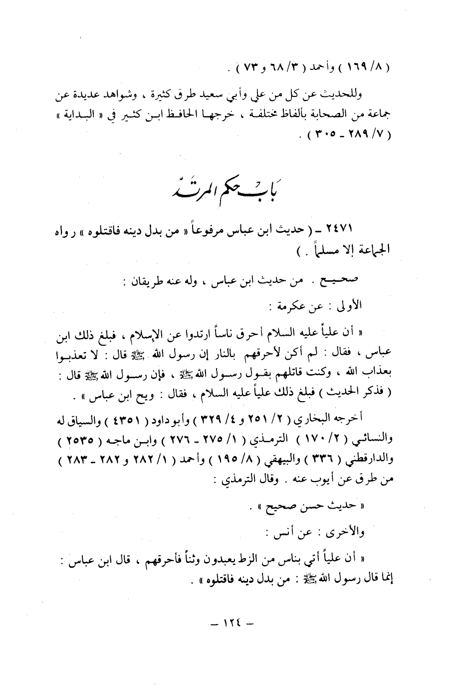 (2471) - (حديث ابن عباس مرفوعا: " من بدل دينه فاقتلوه " رواه الجماعة إلا مسلما.