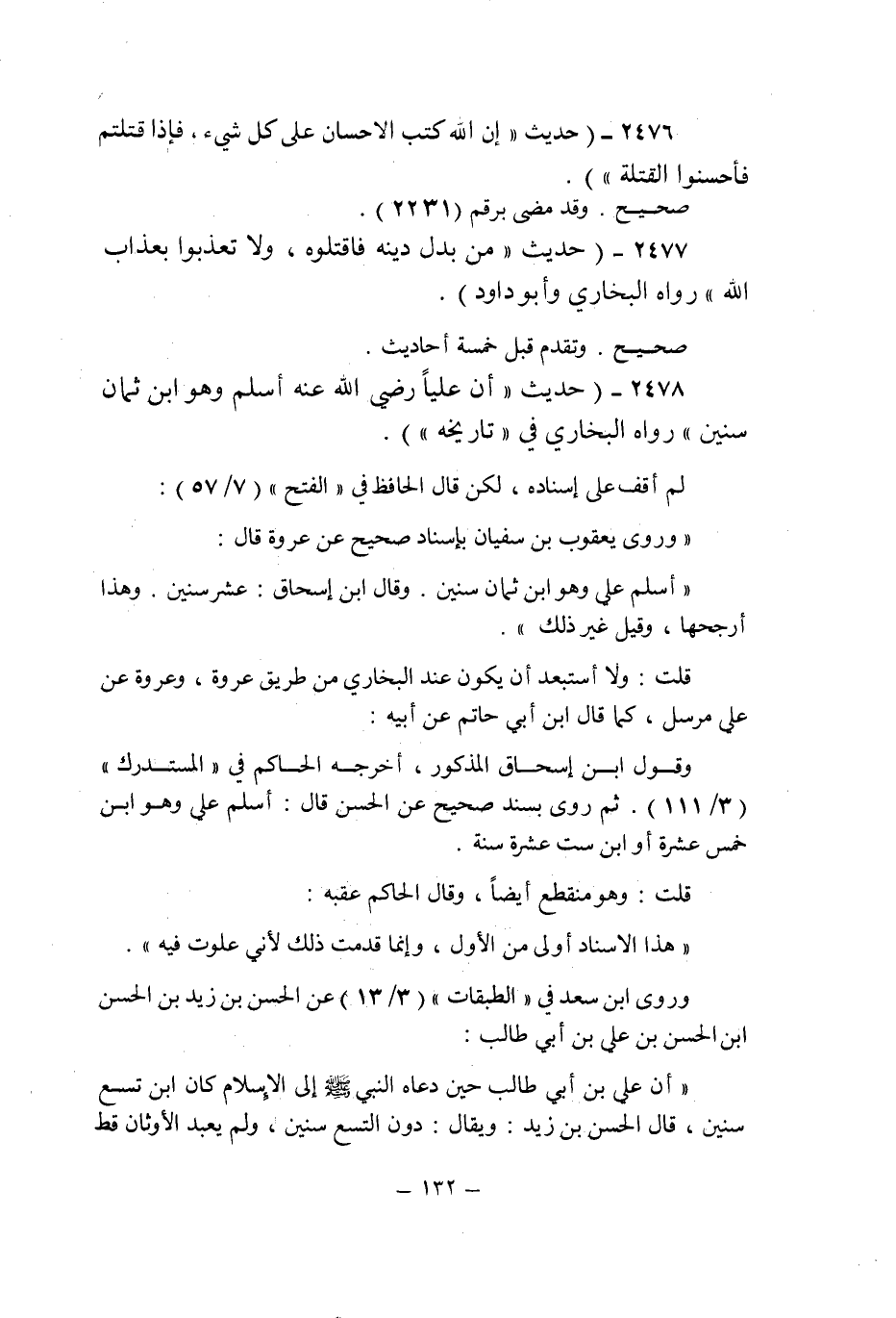 (2478) - (حديث: " أن عليا رضى الله عنه أسلم وهو ابن ثمان سنين " رواه البخارى فى " تاريخه ".