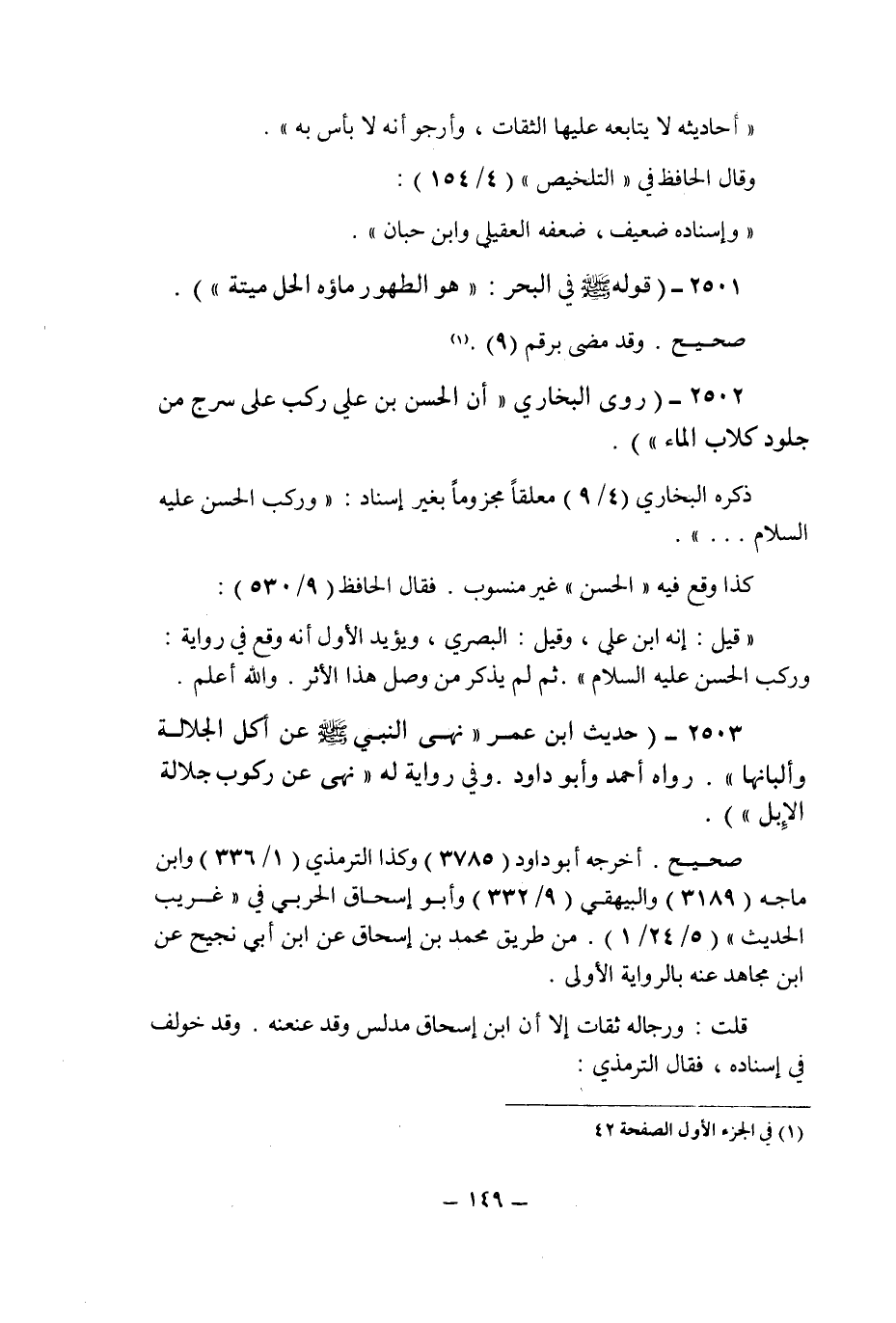 (2502) - (روى البخارى: " أن الحسن بن على ركب على سرج من جلود كلاب الماء ".